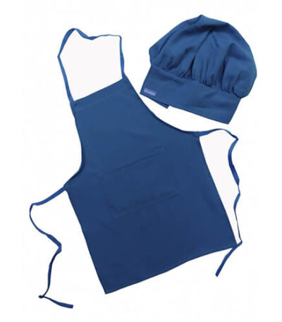 Plain Blue Lenin Prined Kitchen Apron set
